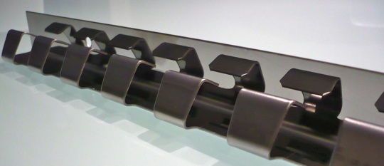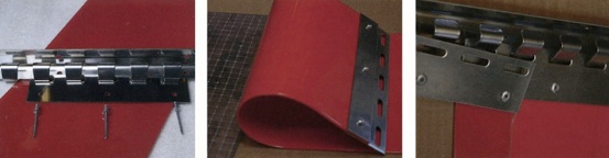 Tan sólo precisa de una barra de acero inoxidable para colocarse en el hueco a cubrir y mediante unas pletinas de acero (que sujetarán cada una de las lamas) iremos colocando pletina a pletina en la barra hasta tener confeccionada nuestra cortina de lamas en PVC.